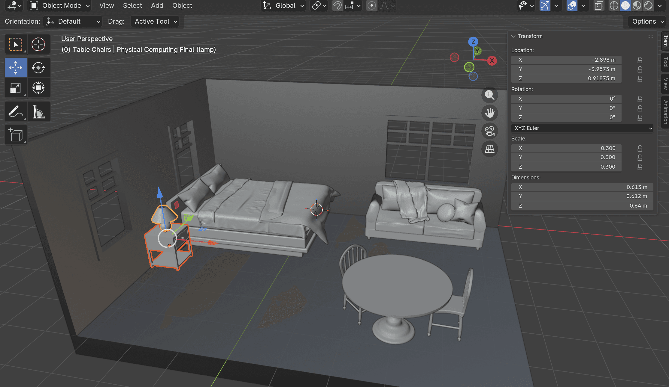 My Mellon Fellowship project will be a physically constructed miniature model of a space (such as a film set or livable interior) paired with a fully developed digital twin in Unreal Engine. The physical model includes movable components - such as walls and props - equipped with sensors to track their positions relative to the overall scene. These movements are reflected in the digital twin in real time, enabling simultaneous physical and digital previsualization of a space. The final project extends this system into a fully navigable VR experience, allowing users to move seamlessly between third-person manipulation and first-person immersion. This project aims to support and accelerate the prototyping of complex, immersive, and highly thematic environments at a professional level. Rather than serving as a simplified demonstration, the final system is designed to function as a robust design tool. It enables designers to rapidly iterate on spatial layouts, test experiential qualities, and communicate ideas clearly across both technical and non-technical stakeholders. The integration of a responsive digital twin with a tangible model allows for intuitive interaction while preserving the depth, atmosphere, and scale of a fully realized environment. The completed project will demonstrate how hybrid physical-digital workflows can bridge gaps in traditional design processes. It will produce a system in which users can manipulate a space physically, visualize it digitally with high fidelity, and experience it immersively in VR. The final outcome will not only be a working prototype, but a scalable framework for future applications in themed entertainment, architecture, and immersive storytelling.