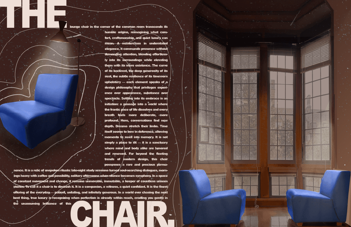 This is a mock, catalog-style magazine that I created for my Advanced Graphic Design course. I had a ton of fun styling ordinary objects in an "extra"ordinary manner. Read the magazine's mission statement and take a scroll through the spreads below. We started from one strong belief: that in today's world, new and memorable experiences constitute our true personal luxury. We are convinced that these unique moments are what enrich our lives and leave a lasting impact. So here's to the memories in the making, to those extraordinary experiences that become the stories we cherish and share.